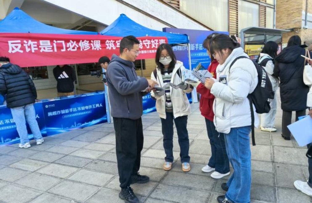 为提升高校师生防范电信网络诈骗的意识和能力,营造安全稳定的校园环境,11月26日,保卫处、财务处、中国银行昆明市呈贡支行、中国银行云南省分行反诈专班、昆明市反诈中心等单位共同在呈贡校区组织开展了“全民反诈在行动”“智慧用卡,安全支付”主题宣传教育活动。