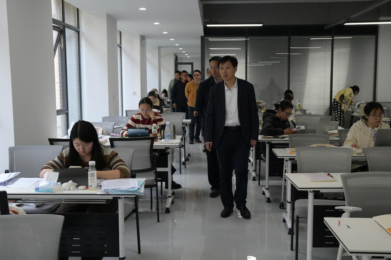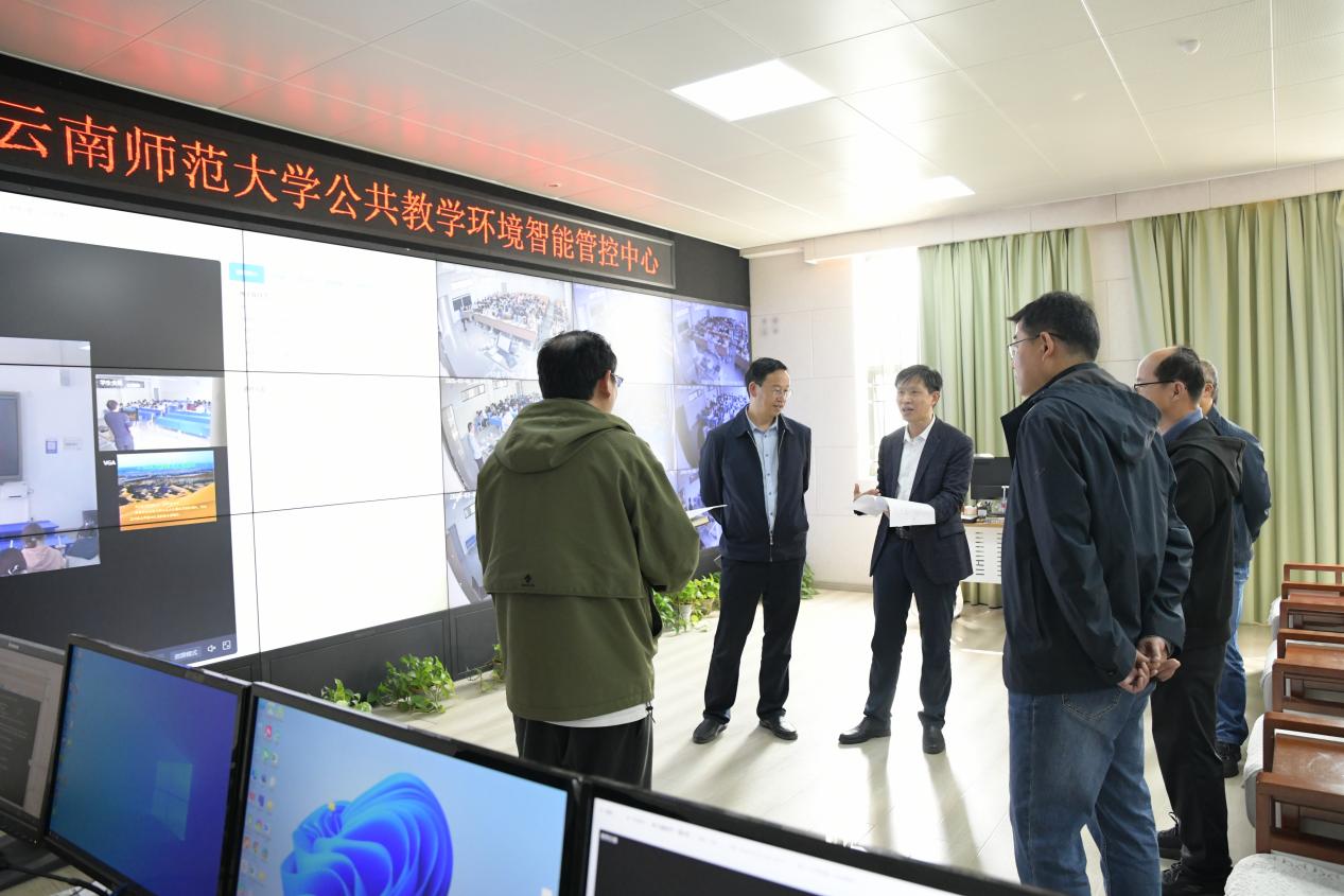 在汇学楼,检查组检查了学生教学楼日常教学服务保障情况;在公共教学环境智能管控中心,检查组检查新学期教学工作,了解本学期教学安排,详细查看AI在线督导平台建设进展,通过平台实时巡查课堂教学状况,并对下一步教学工作提出具体要求。在学前教育大楼,检查组听取了教育学部整体搬迁情况汇报,检查了学部教学设备、消防设施、安全保障等情况。
