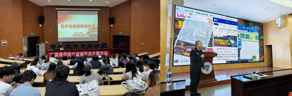 为切实提升师生反诈防骗意识,筑牢校园安全防线,4月1日至2日,保卫处邀请吴家营派出所倪辉警官,为地理学部、外国语学院300余名师生代表开展反诈防骗专题宣传教育活动。